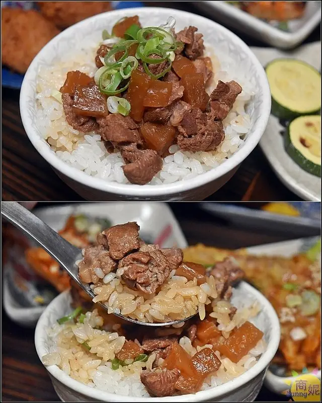 牛筋飯也是他們人氣招牌,牛筋與牛肉切丁再淋上牛肉醬汁,攪拌後味道很香。牛筋口感軟嫩Q彈味道香甜還有滿滿膠質,一口接一口很快就被搶食一空。