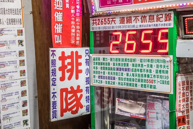 LED跑馬燈寫著永德堂薏仁牛奶的連續上班不休息時間,聽說中間有中斷,中斷的原因是因為跑去綜藝大熱門錄影…..不過能連續上工這麼多天,老闆的體力跟毅力真的驚人!