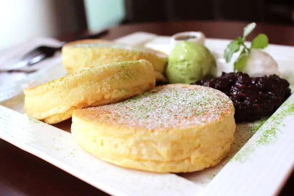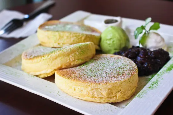 [紅豆抹茶白玉米冰淇淋鬆餅]$180