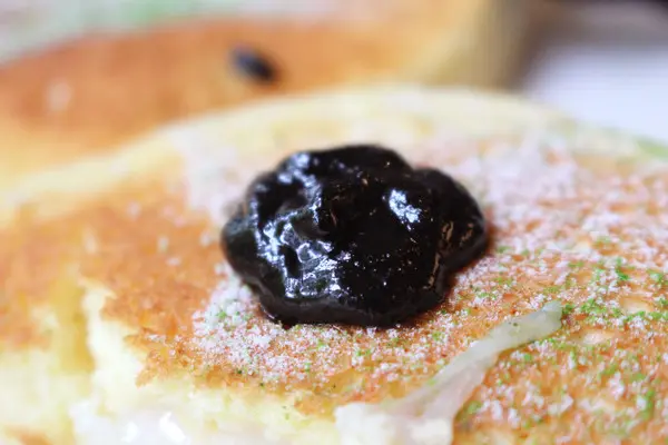 自己加工把黑胡麻蜜塗滿整個鬆餅