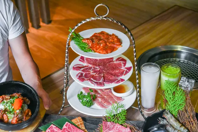 這天我們是點兩人份的極致套餐,不吃牛的人來老井也不用擔心,精緻套餐、豪華套餐都是非牛的菜色,而極致套餐則是包含雞、豬、牛等肉品,預算更多的人也有和牛套餐的組合~老井燒肉的價位落在$1680~$4140之間,平均一個人不用一千塊就可以吃得很飽!