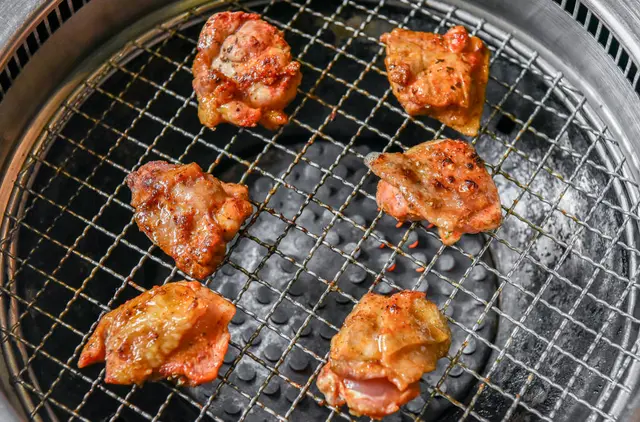 使用特製醬料醃漬過的烤雞烤到皮酥微脆的口感超棒,咬下後軟嫩的肉質還保有滿滿的雞汁!而且腿肉還很厚,所以需要多烤一點時間。