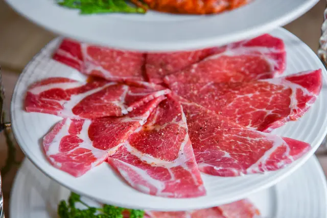 使用提架裝飾的是非牛肉的三種肉品,分別是田園香草雞+手切薄片松坂豚+本產梅花豬。