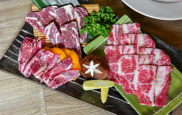 極致套餐的牛肉統一使用美國牛,每個部位都品嚐的到牛肉的香氣,三種肉品分別是特選牛五花+美國厚切牛排+美國牛肋條。