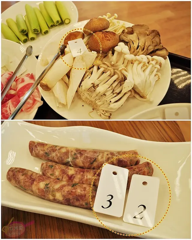 每道菜的蒸煮的時間,都標記在食材盤裡的牌子上