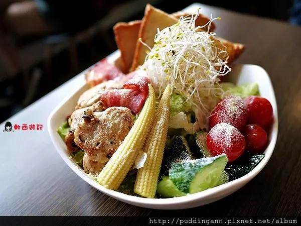 附餐沙拉~超鮮艷漂亮的顏色,而且好多蔬果超健康的感覺耶~