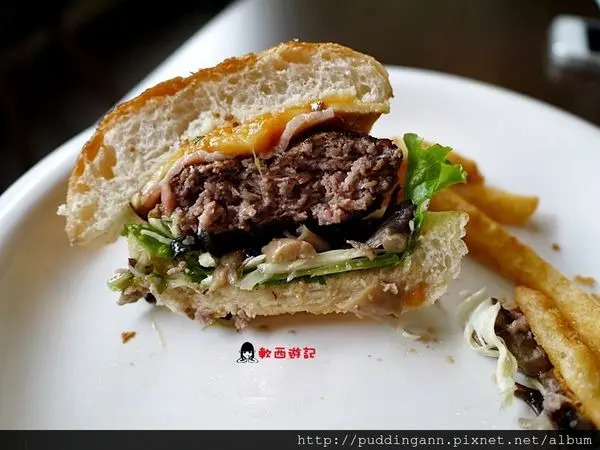 再來要上主餐啦~今天跟姊妹兩對很有默契得都點了濃厚起司牛肉堡(NT220)