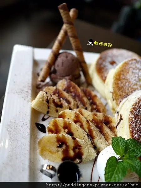 香蕉巧克力配上脆笛酥跟鬆餅超搭啊~
