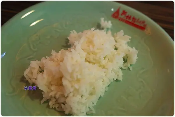 店員上一壺香米飯, 再幫忙把香米飯打在盤中, 原來泰國本來就是用盤子裝盛, 再用手抓著吃