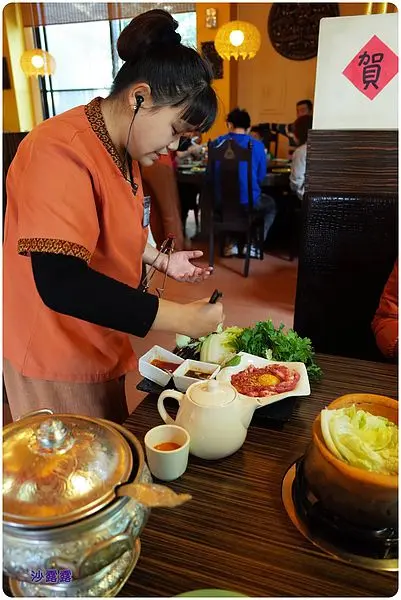 風味鍋的菜&料另外用盤子裝, 店員提供桌邊服務, 幫忙把料放入鍋中煮