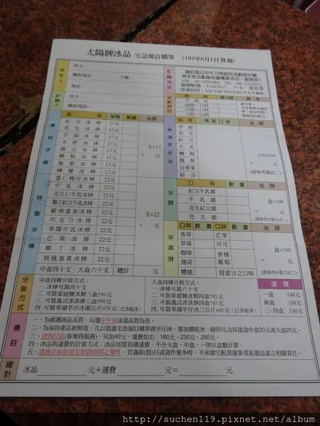 太陽牌冰品也有提供宅急便配送喔!!附上訂購單