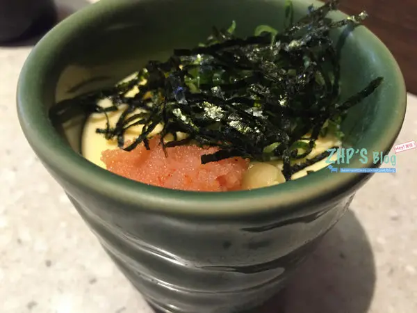 點了毛丼、蟹肉手捲、明太子茶碗蒸還有洋蔥果醋