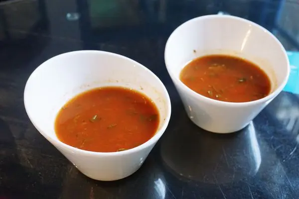 番茄湯濃郁酸香 裡面有滿滿的料 好喝搭麵包也很配