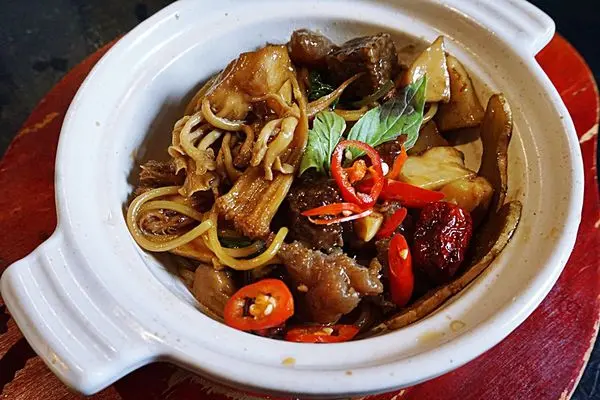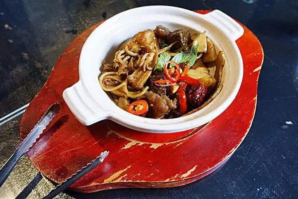 男人超喜歡這道 麵條依附了三杯的鹹香 猴頭菇Q彈 黑木耳爽脆 還有類似米血吃起來軟嫩的素料