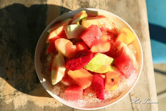 看到這樣的價格和這樣的份量真心覺得以後吃冰都要往善化麻豆一帶去,價格給得很漂亮之外,水果的份量也是不容小覷的,裡面分別放上了芭樂、火龍果、芒果、香蕉、西瓜、鳳梨等,一整個就是撲好撲滿的概念,吃起來好過癮啊!