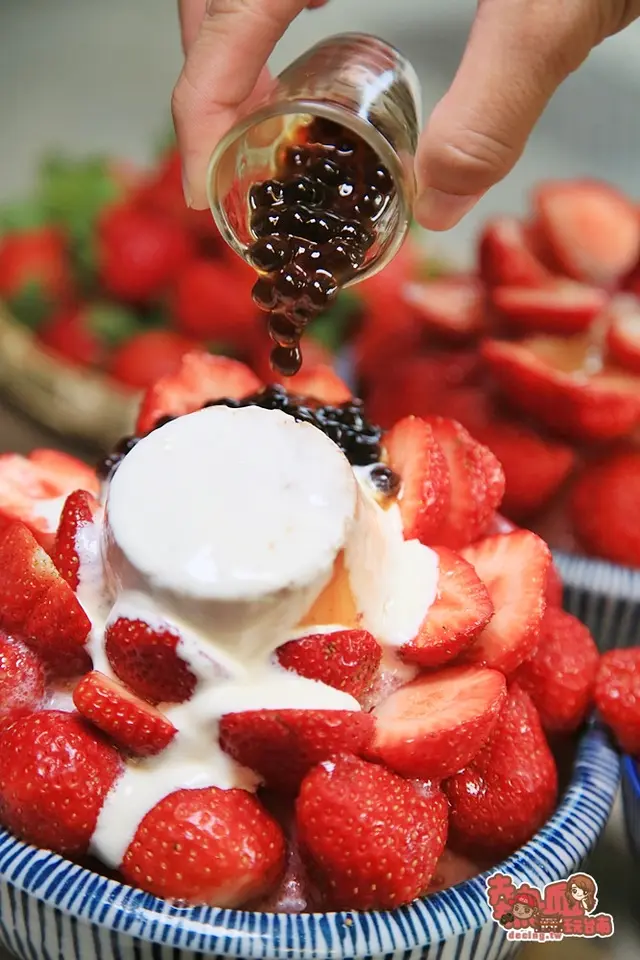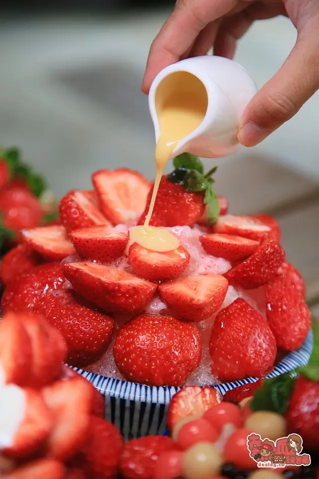 淋上煉乳之後的草莓更好吃了,酸酸又甜甜的風味更好,怕酸的朋友也不用擔心了,好好享受這一碗極致草莓冰吧^^
