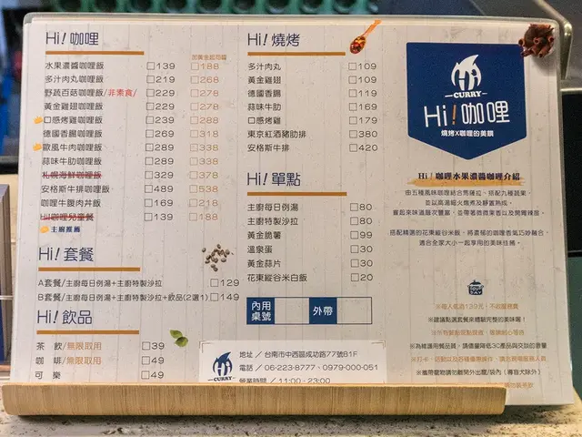 Hi!咖哩的菜單底加啦,最新最完整資訊請依店家現場為主