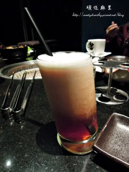 招待的飲料,好像是海藻類的,喝起來比較清爽搭配烤肉食用還不賴