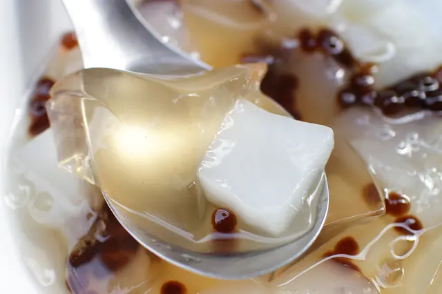 而搭上一點杏仁,讓愛玉多了一份杏仁的香味,配上糖水微香微甜,讓整體風味更多了一些層次感。