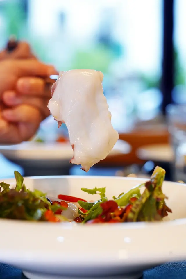 ▼章魚新鮮Q彈,搭配酸甜的油醋醬,泡鹽水處理的鮭魚卵,新鮮生菜,整體吃起來非常清爽開胃。