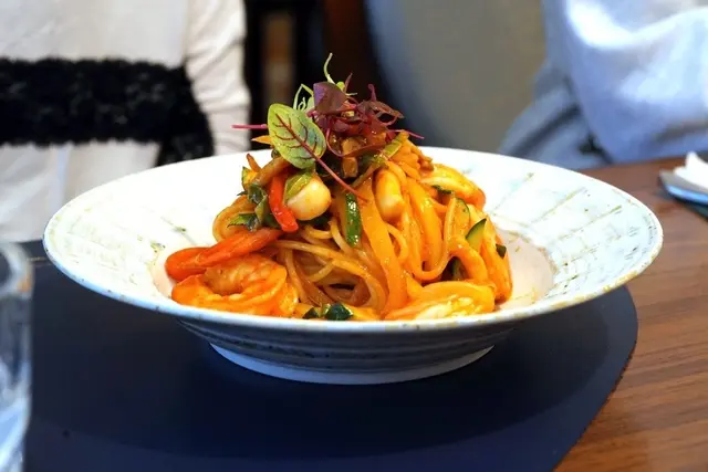 ▼義大利麵Q彈入味,麵體也是軟硬適中,紅咖哩醬汁香、微辣,但醬汁不會過於滿溢很好地包裹著麵體,是傳統結合創新的義大利麵!鮮蝦也滿大尾的~蝦肉很飽滿,吃起來又彈又鮮甜,能吃得出挑選食材有用心😍