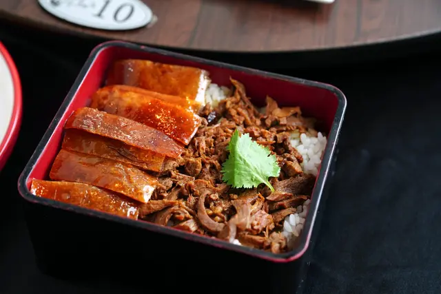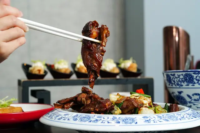 龍年烤鴨套餐包括烤鴨肉飯、經典片鴨、烤鴨肉羹、醬炒鴨架和三絲春鴨捲,每道菜都各有特色,讓人吃得過癮。