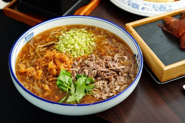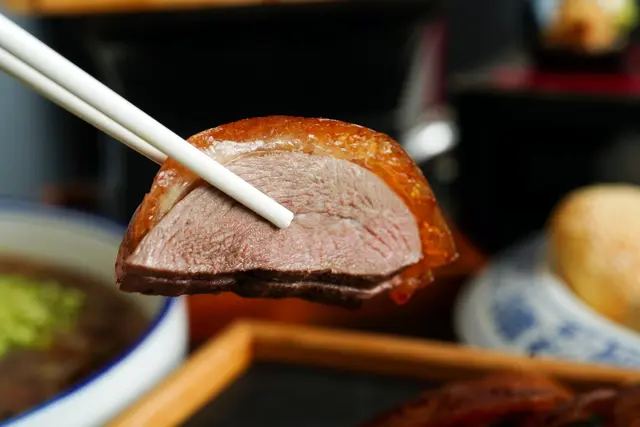 片鴨是烤鴨最經典的吃法,皮脆肉嫩,油脂豐潤,鴨皮烤得酥脆油亮,鴨肉鮮嫩多汁!搭配特製的荷葉餅、甜麵醬和蔥段,美味無比~