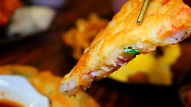 搭配的白蘿蔔可以去膩 , 炸年糕也蠻好吃的