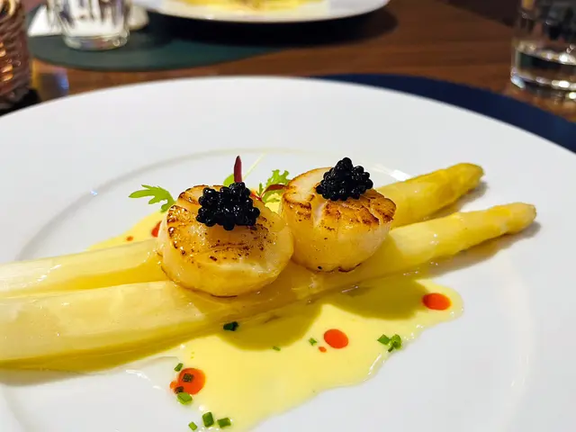▼不是每次來都有前菜可以加點,剛好今天有秘魯進口的白蘆筍,主廚搭配新鮮干貝、魚子醬,佐奶油濃醬、西班牙辣椒油。白蘆筍味道和一般常見的綠蘆筍完全不同,白蘆筍吃起來甘甜清脆,本身就像是帶有奶油味的蘆筍