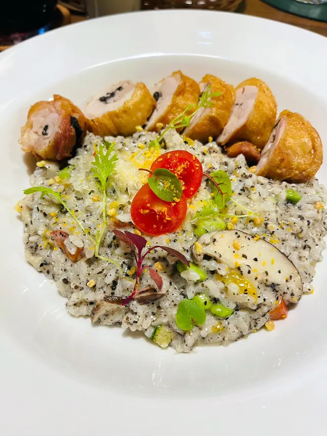燉飯使用義大利米和台梗九號米,用高湯、松露醬細細熬煮,米粒吃起來濕潤有彈性,充滿松露香~