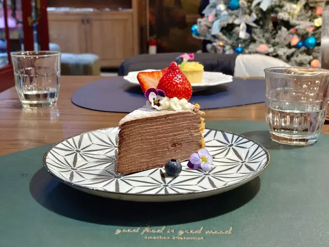 ▼千層蛋糕很濕潤,巧克力鮮奶油滑順、不甜不膩,還有一整顆酸甜可口的新鮮草莓,非常完美的結尾~