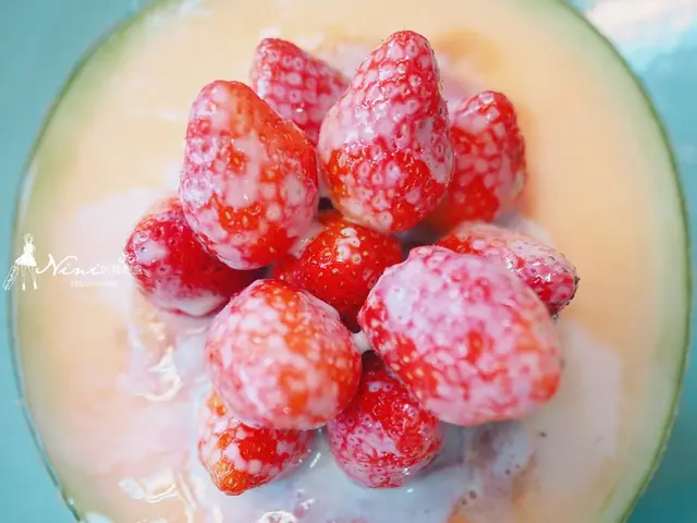 甜甜的哈密瓜與酸甜的草莓同時入口,微酸香甜又多汁,好好吃喔!