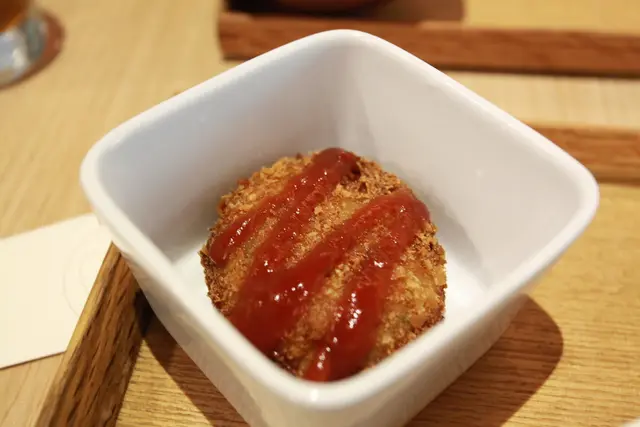 炸可樂餅上面淋上番茄醬。