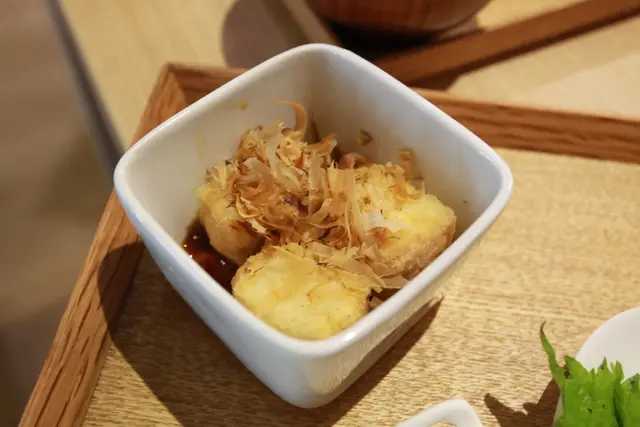 炸豆腐搭上柴魚片相當爽口好吃。