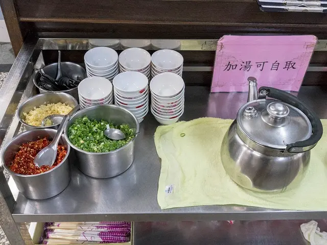 店家的醬料區,提供青蔥、蒜頭、辣椒等等,需要加湯的話也可以在這邊自取