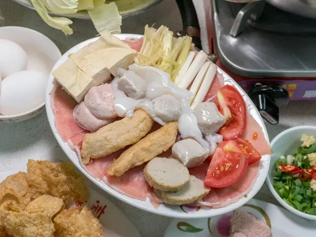豬肉爐基本菜盤就是下面的照片再搭配一盤高麗菜,我們習慣將小卷、肉片以外的食材先丟入鍋中熬煮一下