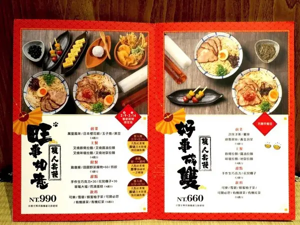 店家除了單點拉麵外,也有各式雙人套餐的設計,滿足大家的味蕾需求。