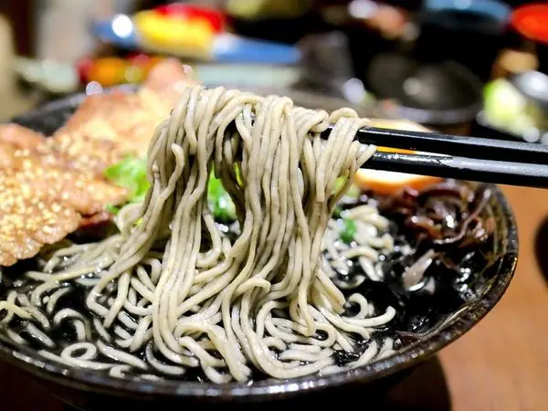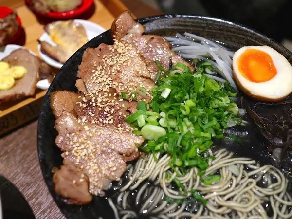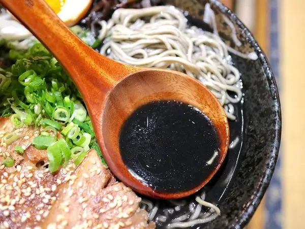 有著墨魚口味湯頭的拉麵,搭配了豚骨魚介湯頭&炒過的黑芝麻香油,個人覺得海味十足,鮮味濃郁!