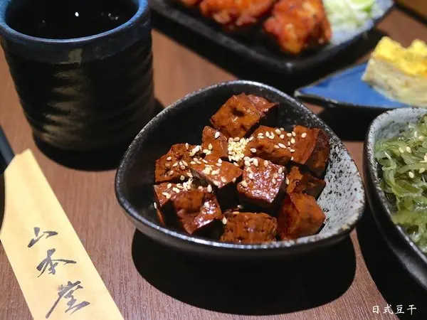 日式豆干,小正方形的角塊狀,一口一個,香甜涮嘴。