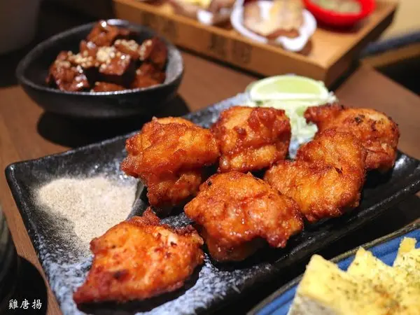 雞唐揚:日式炸雞的正宗作法,薄薄的一層炸皮,酥脆下帶著多汁鮮嫩的雞肉!也很推!(必點!)