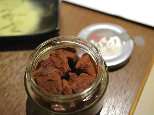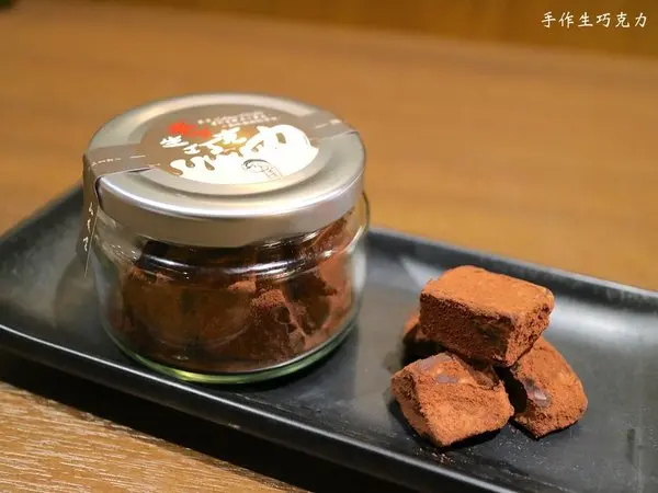 生巧克力,入口遇熱即融化,口感很滑順~ 外面的苦甜可可粉,中和了巧克力的甜,整體甜度適中!