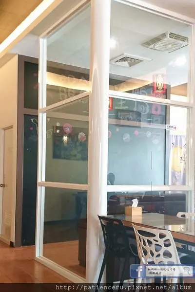 而這半開放的空間設計的很巧妙,用透明牆擋住了往前飛的粉筆灰,防止粉筆灰加料到客人的餐點裡。