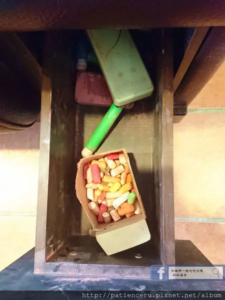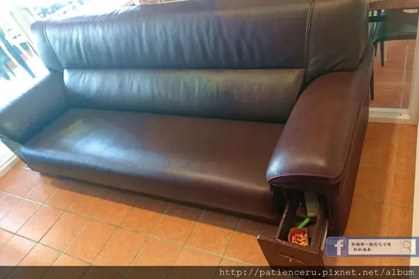 粉筆和板擦的收納也不錯,就放在沙發扶手下,只要拉開抽屜即可。