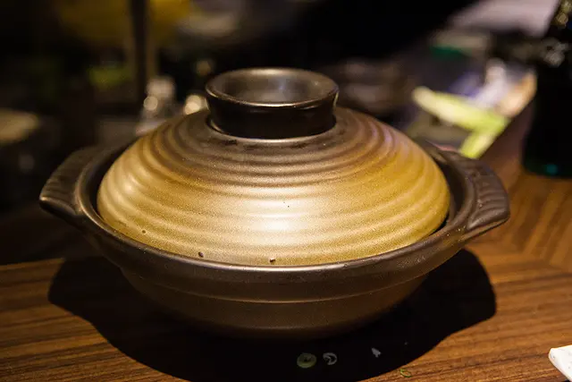 燒完之後老闆就將碗蓋蓋起來將豬肉在裡面煙燻