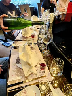 美味:😋價格:💰💰💰💰(不含酒)整體:😇💖感謝我老大哥又辦了一場睽違已久的喝酒局,重點雖在要價不斐的酒,但必須得說這次有些菜真的挺好,雖說無法確定"正常情況"是否能吃到一樣品質(畢竟我在最近寫的那篇晶華軒就提過..台灣高級中餐廳的一些現況😶),但至少分享一下我跟好友都蠻喜歡的部分。首先20人包廂的點心用位上方式,在保持熱度的同時卻沒有讓成品的口感往下掉(比如濕氣等影響),招牌春風得意腸狀態依然良好(其實也沒遇過難吃的時候),炸後烤製、火腿香氣充份的蘿蔔絲酥餅味道平衡度絕不比薄皮型差,炸金條(乾苔春卷)也是水準之上,香韻醇厚的雞火豆腐絲會是我假若獨自前來會點選的菜,其餘大致就是火焰片皮鵝的鵝粥、甜點的芝麻球與豆腐奶,鵝粥在上次喝酒局就有朋友說是台北表現數一數二的。酒單:salon 02dom p2 02krug 02au pied du 08cecile tremblayhudelot noellatdyqueum 82-強哥招待煙燻小墨魚、柚香蓮藕、烏魚子等,搭配Salon 02開場-明蝦餃、蘿蔔絲酥餅、春風得意腸、炸金條-肉鬆雲耳燜絲瓜-雞火豆腐絲-翡翠炒虎斑球,搭au pied du秀芙山腳一級園 08,好友說是當餐最美的邂逅-吊燒炸子雞,沾紅胡椒鹽香氣很好-陳醋五花骨-火焰片皮鵝四吃-加碼酒蛋麵線-爆漿芝麻球、以及快是外面小店10倍價的炸豆腐奶,但確實好吃-招待壽桃,與最近一次在晶華軒遇到的壽桃都好吃、各有千秋-跟強哥認識的朋友來一張查看更多