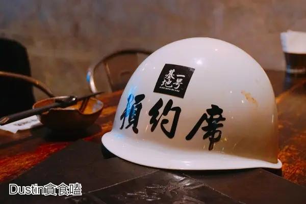 若已被預訂的座位 餐桌上會放置一頂安全帽。