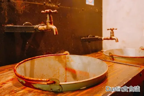 斑駁生鏽的水桶改造成水槽,帶著幾分古意。