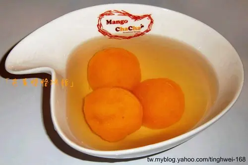 芒果湯圓是以紅心地瓜當外皮,內餡則是熬煮6小時而成的芒果醬
