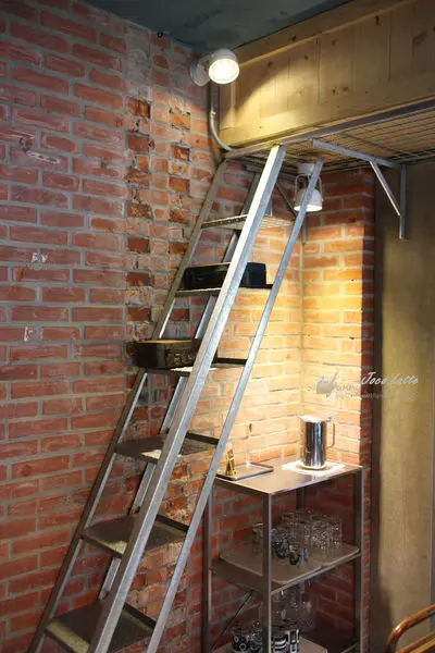 工業風格的設計很完整,利用銀色水管、鐵架構成的吧檯,減輕了重量感。