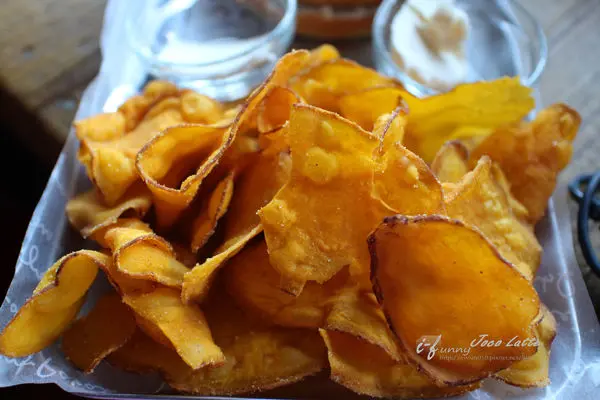 這蕃薯片真的很古早味,小時候到外婆家都有這樣的零食可吃,能在這樣的咖啡館吃到,覺得很新奇!